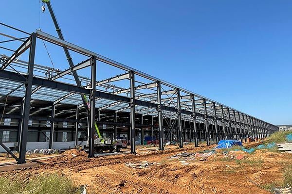Steel structure factory buildings are the most common portal steel structures. Portal steel frame is a traditional structural system. The upper main frame includes rigid frame beams, rigid frame columns, supports, purlins, tie beams, etc.